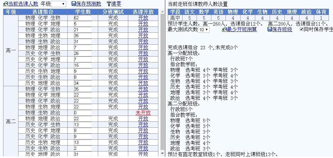 資源分析:根據學校現有的教師資源和教學場地資源,預測能夠接納的學生選課結果,做到心中有數。 (為了幫助即將進入新高考或已進入新高考的學校了解自己所在學校的教學資源對學生選課走班的支持度,我公司特別開發了“走班分班測算工具”,此工具可為用戶提供免費的分班測算) 宣傳動員:對學生進行選課前的宣傳工作,目標是在充分尊重學生選課意愿的前提下,給予學生適當的指導。這也是學生生涯規劃的重要組成部分。 學生選課:學生完成選課操作并匯總選課數據。 分班:對學生和任課教師進行分配,目標是要保證分班的結果一定能夠進行排課。 排課:考慮了學校的一些特殊情況后,完成課程表的編制。 三、99走班排課系統特點