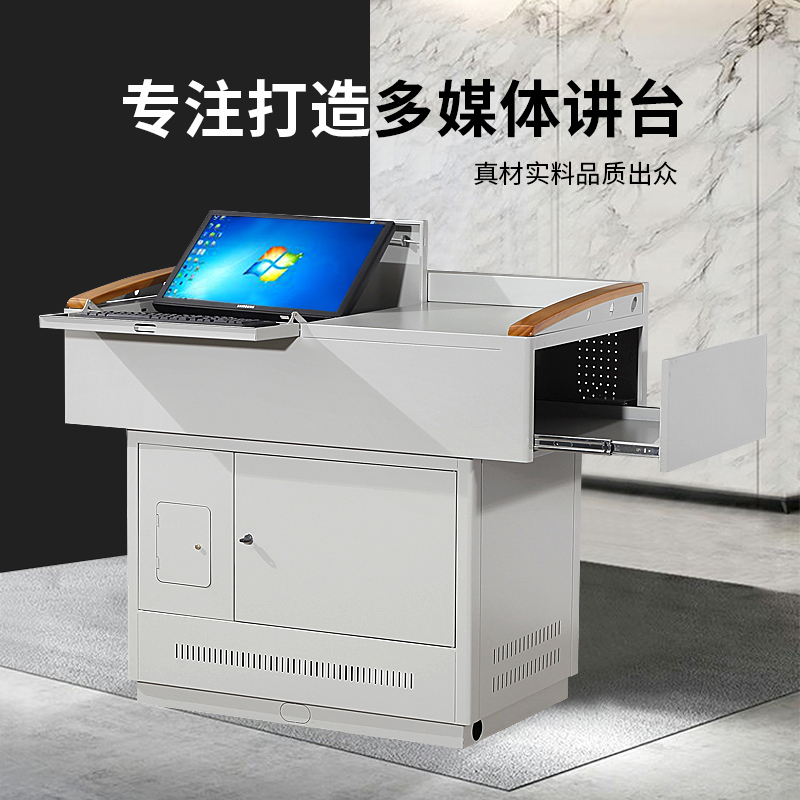 產(chǎn)品詳細介紹1.外形尺寸:1200*700*1000mm;上柜體:長度1200mm,寬度700,高度340mm;下柜體:長度900mm,寬度600mm,高度660mm; 2.采用1.0mm-1.2mm優(yōu)質(zhì)精裝冷軋鋼板,經(jīng)數(shù)控激光切設(shè)備加工而成,表面酸洗、磷化、防腐、防銹、鈍化處理后靜電噴塑(顏色用戶可選定),塑面經(jīng)久耐用。 3.講臺桌面采用平面設(shè)計,可以放置17-24寸不同品牌的液晶顯示器,顯示器固定在活動支架上。右前方平面可放筆記本等設(shè)備; 桌面四周半包圍結(jié)構(gòu),有效防止物品滑落; 4.講臺右側(cè)設(shè)置隱藏式抽拉展臺抽屜(長*寬*高:580*515*200 mm) 5.講臺扶手采用橡木制成,表面噴高檔防滑漆,使用起來光滑度高, 使整個講臺看起來美觀大方。 6.整體沖壓成型,整體結(jié)構(gòu)緊湊,空間設(shè)計合理; 7.講臺下柜前后門均可打開,電腦主機的光驅(qū)和USB接口設(shè)有專門的可開合小門,方便放設(shè)備,后方有上下門,便于檢修設(shè)備,下門沖散熱孔,方便散熱;整個下柜可作為儲物柜使用; 8.全部的加工件均采用模具成型,激光切加工而成、配合優(yōu)良的焊接工藝,保障尺寸精度及各部件一致性,保證安裝的方便快捷。 9.整個講臺采用上下分體,拼裝組成,大大的減少了運輸成本。 |