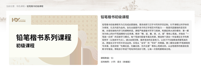 鉛筆楷書課程以“由淺入深”為筆,勾勒習字進階圖景:起步練基礎動作,讓運筆如溪流般漸趨協調;再攻筆畫專項,搭配例字讓筆墨理解更顯鮮活;隨后精講部首寫法,憑對比練習悟透框架組合;最后步入綜合應用,于詞句書寫里錘煉布局能力,悄然實現從技法積累到藝術創作的蛻變。