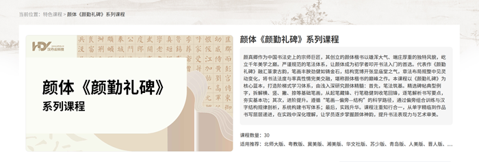 平臺如一座書法藝術寶庫,既有篆、隸、楷、行、草等傳統書體的教學滋養,亦含硬筆與粉筆書寫的細致指導;更輔以教學視頻、碑帖字帖、集字臨帖、云備課等模塊,為書法教學鋪就一條融合科技與傳統的創新之路,讓筆墨傳承煥發新的生機。