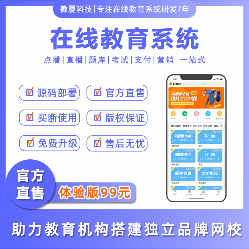 微廈在線學習系統是一款集“學練考”于一體的在線云課堂平臺,讓講師和學生能夠在云端“教在一起,學在一起”。解決日常講師和學員在線學習,線上考評,教學管理等問題。為高校,集團單位,醫院,軍隊,出版社以及各類教育培訓機構提供在線培訓考試服務。