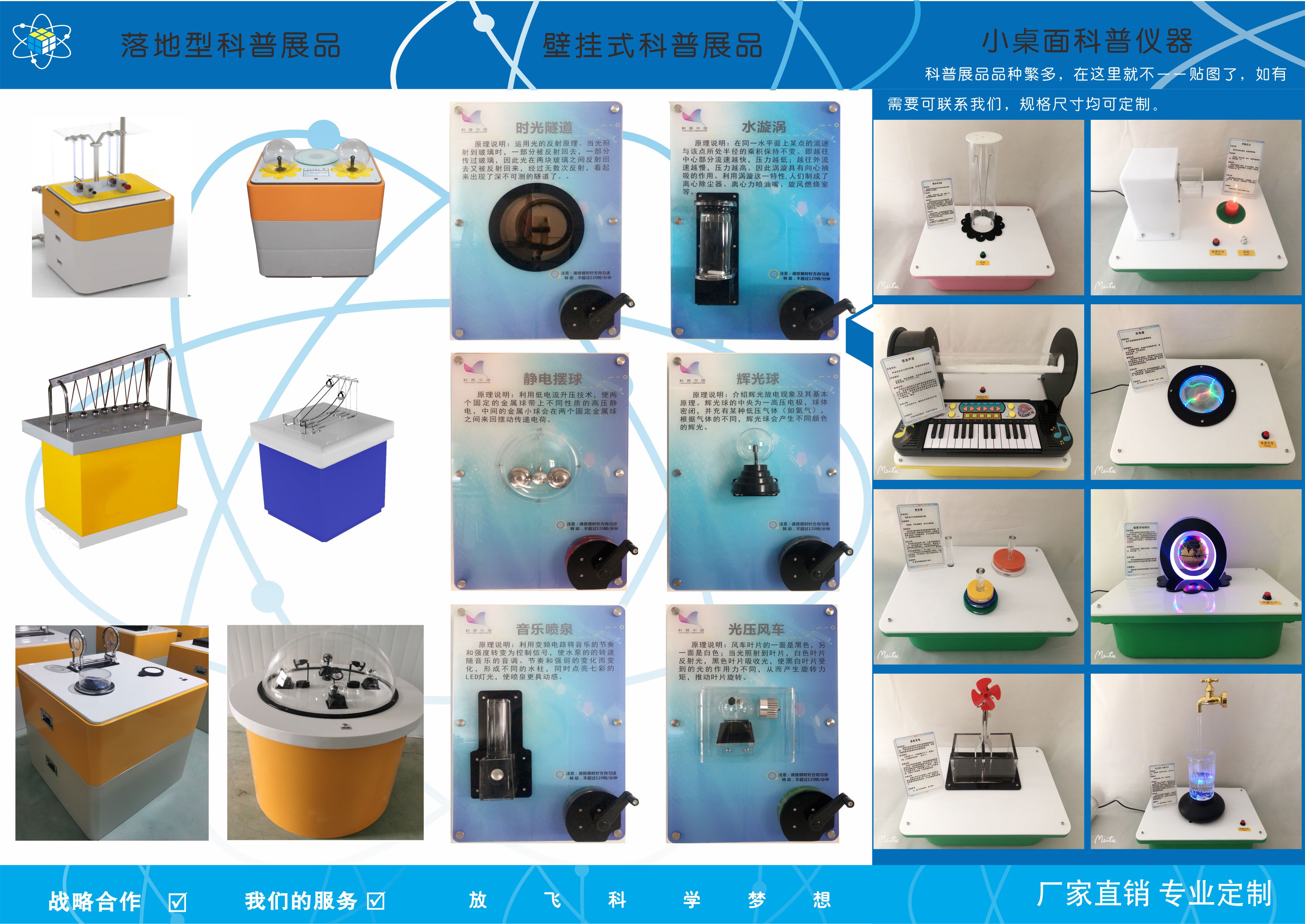 尺寸60cm*40cm 材質:樺木夾板,環保水性漆;無毒,無味。采用模塊化手搖發電機構和穩壓穩流技術供電。 光電盤(輝光盤) 電影原理 時光隧道(窺視無窮) 光壓風車 空中成像(視覺暫留) 捕捉磁場 不怕割的材料 吶喊沖關 場致發光 磁力轉盤 磁阻尼環 電磁振子 多像鏡 梵天塔 光控路燈 混沌擺 尖端放電 籠中鳥(小鳥進籠) 莫爾條紋 魔力發動機 納米磁液 七巧板 琴弦影像 熱色液晶 人體導電 三維錯覺(三維立體畫) 上下顛倒 手電池(人體發電) 手眼協調(手不能抖) 四色定理 太陽能電池 調光玻璃 透氣不透水的布 彎曲的平行線 溫柔電擊 弦長與音調 顏料的混合 眼見為虛 飲水鳥 鸚鵡學舌 永動機神話 半導體溫差發電 穿墻而過 溫變茶杯 納米材料 勾股定理 面積變化 無源之水 哥尼斯堡七橋 光致發光(紫外線與熒光劑) 聲懸浮 音樂噴泉 水漩渦 轉動的錯覺(眼見不實) 手機輻射 條紋動畫 滾出直線 無線供電 哥德巴赫猜想 染色體與遺傳 巧選會和地點 幻影成像技術 光學轉盤 希羅噴泉 潛望鏡  記憶合金花 幻覺圖形 光纖應用 磁懸浮 彩色合成 反光材料 溫差發電 動量守恒 同自己握手 最速降線 手搖交直流發電機 激光通訊 離心現象 磁制動 靜電擺球 超聲波測距 鐵樹開花 半導體制冷技術 人體工程 盲文體驗 格柵面積 哈密頓問題 蒲豐游戲 實測求л 自然數平方規律 彩色合成 場致發光 磁力轉盤 磁懸浮 反光材料 光纖應用 光致發光 幻覺圖形 記憶合金花 納米材料 七橋問題 潛望鏡  熱色液晶 手電池 手眼協調 手不能抖(手的穩定性、一筆畫) 太陽能電池 透氣不透水的布 溫差發電 希羅噴泉 弦長與音調 液晶調光玻璃 立體成像 留影箱 led發光二極管 穿墻而過 動量守恒 勾股定理 輝光閃電盤 混沌擺 莫爾條紋 琴弦影像 時光隧道 同自己握手 顏料的混合 飲水鳥 永動機神話 最速降線 手搖交直流發電機 超級電容器 磁懸浮列車 立體雕刻 家庭電路 驅動鋁盤 感知地磁 手機輻射 轉角鏡 手搖發電 神奇的普氏擺 雙曲狹縫 蛇形擺 數碼字符 超彈材料 惰性管 花的隧道 無形的力 小小電動機 發電機與電動機 齒輪墻 半導體制冷技術 紫外線與熒光劑 語音芯片 新型能源 電影原理 光壓風車 幻影成像技術 無皮鼓 尖端放電 分形幾何 移棋相間 調光玻璃 超級法拉第電容 伯努利效應球 感知地球磁場 混沌擺 水漩渦 風力發電 穿墻而過 米字數碼管 反射畫 離心現象 磁懸浮車 電磁制動 發電錨 磁阻尼環 靜電擺球 莫爾條紋 磁感線 磁力盤 納米磁液 聲懸浮 超聲波測距離 激光通訊 視覺暫留 月球對日軌道 鐵樹開花 彎曲的平行線 發電輪 光電盤 與小熊對話 傘齒輪 能吹滅的燈 空中成像 光壓風車 空調原理 書本懸浮球 燈光隧道 89還是52 表針運動 手機輻射 立體雕刻 電磁發電 驅動鋁盤 小鳥進籠 彩影吉兇 人體導電 家庭電路 高清像素 上下顛倒 地震預測不準  眼見不實 超級電容器 法契納圓盤 轉角鏡 尼普科夫轉盤 人體發電  人隨鏡轉 汽車重心  柱面兩景  兩面人物  逆風而上  聲音辯向  遠光近光  夜行關燈  前窗角度  汽車換擋  熱變色膜 熱變色杯 夜色觀畫 光變眼鏡 紅外變畫 紫外防偽 香味花卉 單向觀察 荷出污泥 不同眼睛 神奇蛛網 樟木驅蟲 人體溫度 精密蜂巢 耳朵辯向 果味辯晰 脈搏辯病 人體工程 蜻蜓翅膀 生物導電 仿生壁虎 記憶力測試 手眼協調 哥德巴赫猜想 隨機成群 取火柴游戲 四色定理 格柵面積 八仙過海 神奇塔輪 劈蘭 伽爾頓板 飛車過橋 稱量面積 哈密頓問題 生肖魔孔 蒲豐游戲 首位數定理 面積變化 盲文體驗 摩斯密碼 實測求π 騙人轉盤 數字做詩   算姓揭秘密  滾出直線 π之歌 十字機芯 勾股定律 神奇塔輪 圓柱和圓錐 自然數平方 真假《蘭亭集序》 橋 向日葵 拾麥穗 鐵索橋 春風楊柳 最后的晚餐 神奇的影子 水鄉 畫廊 紅綠立體 立體觀察 三維立體畫 神奇的木箱子 亞維農的少女 夜色里的白房子  記憶的永恒  懷特效應 變形浴缸 街頭立體畫 點彩畫派 重疊表達運動 旋轉畫 紅蟻 劈蘭 伽爾頓板 飛車過橋 稱量面積 哈密頓問題 生肖魔孔 梵天塔  蒲豐游戲 首位數定理 吶喊沖關 |