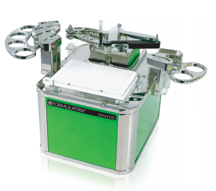 Mantis是一款基于微流控芯片的納升級別微量移液,低死體積,非接觸式自動分液設備;它可以穩定的分液各種液體,包括一些高黏度液體,例如細胞、蛋白、酶、引物、底物甚至液態微珠。