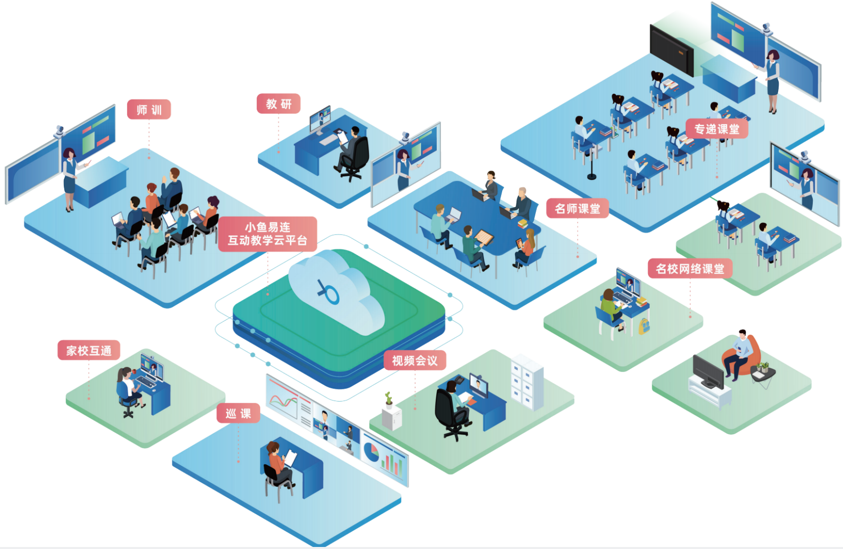小魚(yú)易連打造教育全融合視頻互動(dòng)解決方案,實(shí)現(xiàn)互動(dòng)、直播、點(diǎn)播、資源分享、教學(xué)管理、AI 智能等多場(chǎng)景融合應(yīng)用,推動(dòng)教育優(yōu)質(zhì)資源服務(wù)新生態(tài)的構(gòu)建,利用智能化云視頻技術(shù)協(xié)助區(qū)域教育信息化從 2.0 時(shí)代向 3.0 時(shí)代過(guò)渡,解決區(qū)域教育信息化發(fā)展不平衡、教育資源供給不充分、信息化應(yīng)用水平不高等難題。