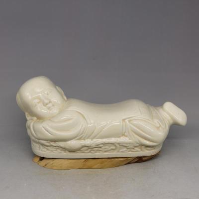 一種瓷器樣式,以“定窯、景德鎮燒制為最美。枕作為孩兒伏臥于榻上狀,以孩兒背做枕面,故名“孩兒枕”。此枕整體線條柔和流暢,兼具實用和欣賞價值。現藏于故宮博物院的這件定窯孩兒枕,釉色牙黃,工藝精巧,先使用模具燒制成型,再加以精細的雕工,活潑可愛的孩童側臥于榻上,雙臂緊抱置于頭下,兩腳疊壓稍稍抬起,孩兒神態栩栩如生,是中國陶瓷史上的經典之作。