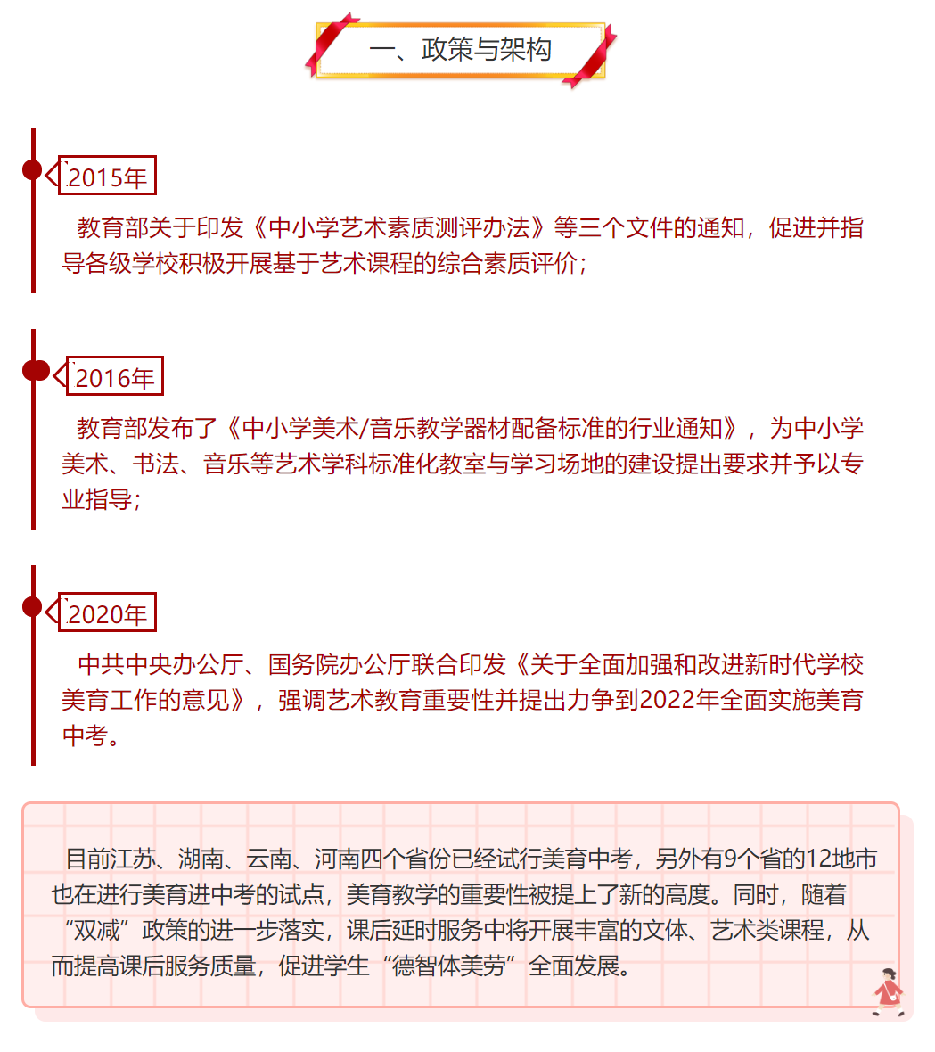 區域美育整體解決方案。創藝號美育綜合建設方案,做到“三建設,三提升”,建設美育創新型課程模式,提升區域整體教學能力;建設美育發展性評價體系,提升學生藝術綜合素養;建設美育專業化場地課程,提升學校優質特色發展,有效服務美育進校園、進中考。