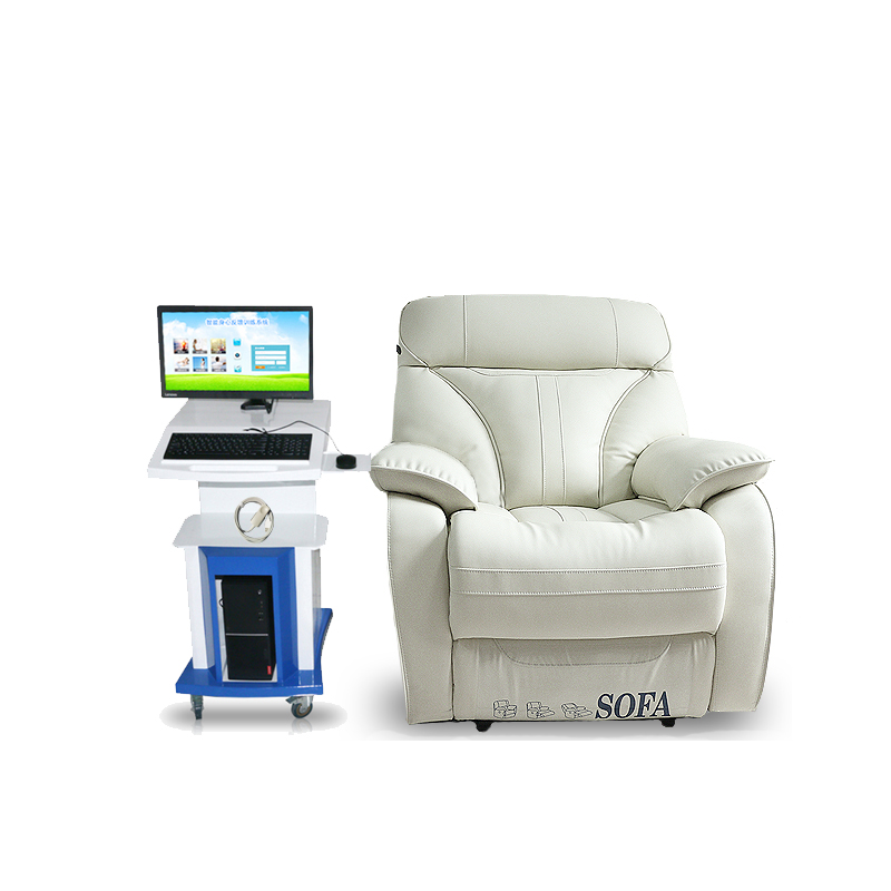 產品詳細介紹)產品控制面板包含電源開關、震動控制、音量控制、切換震動模式、熱療、伸展、收縮等按鍵,并帶有藍牙功能,產品具有電動調節功能,方便來訪者自由選擇坐,臥,躺等最自然,最放松的姿勢。 (2)★體感音樂療法,通過體感振子把不同頻率的音樂轉化為震動,震感隨著音樂節奏的不同實現同步隨動,除了傳統的音樂音頻信號以外,還要將樂曲中低音域的16~150Hz部分變換成數十微米到數千微米振幅的物理振動傳導給人體,可以使人加倍地感受音樂的重低音、節奏感、質感、臨場感和陶醉感。 (3)★藍牙系統,可接受IOS系統,安卓系統等手機,平板無線鏈接,可無需數據傳輸線遠距離播放心理音樂。 (4)★加熱模式,音樂放松椅帶加熱功能,在放松的同時可以切換至加熱模式,使來訪者處在放松的最佳狀態。 (5)★振動模式,系統包含強、中、弱3種震動強度,5種震動模式,可通過遙控的方式自由選擇。 b、臺式電腦配置:(1)內存容量:金士頓4G;(2)處理器:I3 2100 處理器;主板:H61(3)硬盤容量:固態硬盤240G;(4)顯示器:美派克19.5英寸液晶顯示器,機箱:辦公核動力,電腦內置100余首心理音樂,15分鐘放松指導語,4大類型心理視頻(含心理控制呼吸放松真人視頻、心理腹式放松視頻、心理肌肉放松真人視頻、心理鼻腔放松真人視頻)。含專業心理催眠圖片(錯覺圖,不可能圖形等) c、移動工作臺:采用ABS材料一體成型,底部帶移動滑輪,方便咨詢師移動。d、指脈式采集器:采集人體生理指標,心率,血氧,脈搏波形等生理指標。 e、心理放松反饋軟件內置于臺式電腦中,該系統是一款全新概念的心理調節和訓練軟件,通過訓練提高使用者的心理調節能力與放松能力,逐步改善使用者的心理品質,為使用者提供自主訓練解決心理問題的途徑。系統包括音樂調試、視頻調試,自我壓力評估,認知能力訓練,心理調節訓練,學習中心,心理圖片等模塊組成,用戶可自行注冊登陸系統(用戶注冊至少包含賬號,姓名,性別,電話,郵箱,生日,部門等詳細信息,密碼忘記可通過注冊相關信息找回),也可管理員admin直接登陸系統,管理員可查看所有來訪者的個人信息以及 |