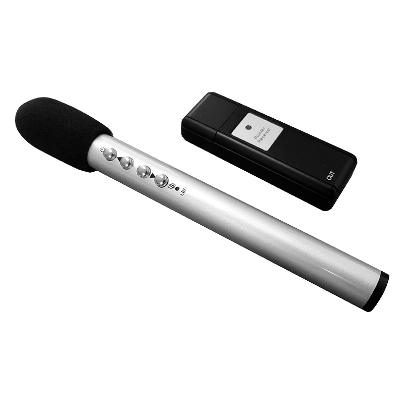 產品詳細介紹產品名稱:筆式發射器 產品型號:FS03 產品參數: 長*直徑:160*15mm 指向性:電容式單指向性 靈敏度:-44(dB) 頻響范圍:40-16K(Hz) 載波頻率:2400-2482Mhz 調制方式:GFSK RF功率:0dBm 最大無線傳輸距離:10-15米 發射器工作電壓:聚合物鋰電池3.7V 連續工作時間:8-12H 產品特點: 1、筆式話筒小巧便于攜帶,話筒與發射器一體設計,金屬質感銀色外殼,時尚高檔。可外接音頻輸入。發射器設置獨立音量調節開關。 2、內置大容量鋰電池,充電3-4小時使用時間長達12小時以上,滿足全天使用的要求。 3、用專業ID碼加密傳輸技術,ID編碼多達百萬組,每套產品只有唯一的ID碼。同一地點使用多套同樣設備互不干擾。 4、采用節能技術低發射功率,電磁波輻射只有普通手機的1/90,名副其實的“綠色無線咪”。