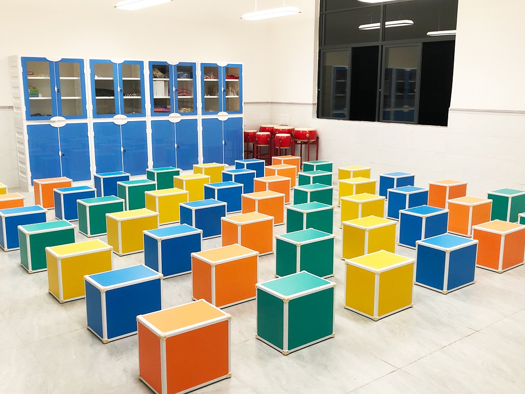 茂名西城學校數字化音樂教室使用北京智泰威盈科技有限公司配備的智慧云音樂教室教學系統軟件、口風琴、豎笛、沙筒、沙蛋、沙錘、雙響筒、卡巴撒、小軍鼓、多音鼓、扁鼓、堂鼓、鐘琴、木魚、響板、響棒、刮棒等常用樂器。
