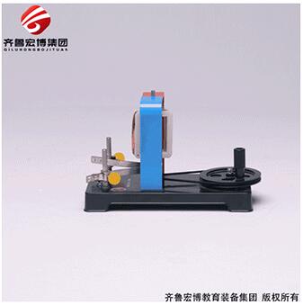 本發電機采用電樞轉子在永久磁場。電樞線圈兩端分別連接到兩個銅環上,銅環式集流和換向的聯動裝置。當手輪旋轉帶動電樞轉子轉動時,線圈中產生電流使發光二極管發光。