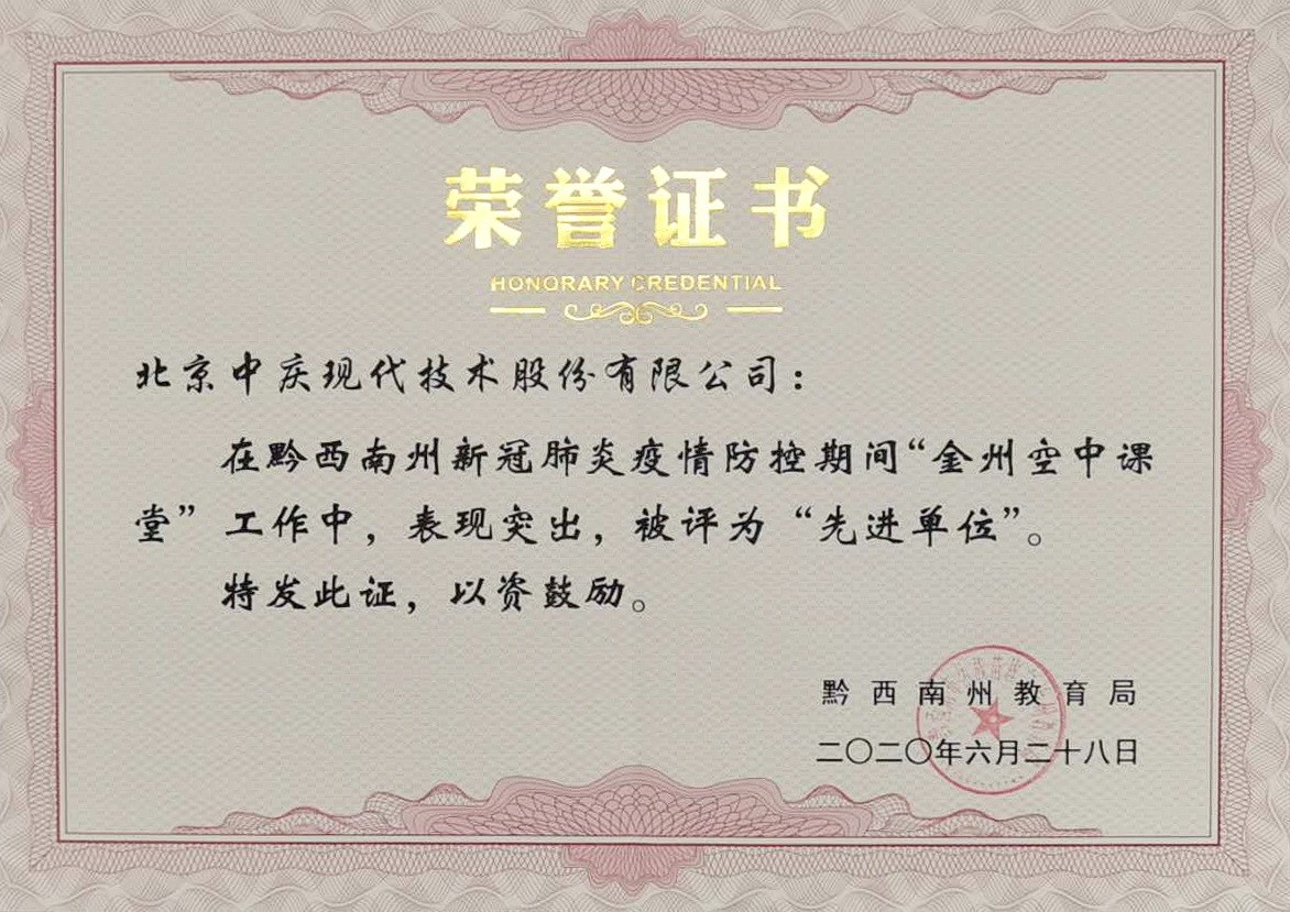 近日,貴州黔西南州教育局對“金州空中課堂”工作中有突出表現(xiàn)的先進單位和個人進行了表彰,現(xiàn)代中慶優(yōu)質(zhì)的服務(wù)得到教育局的認(rèn)可,與25個市縣教育局和學(xué)校單位一起榮獲先進單位稱號。