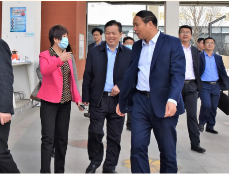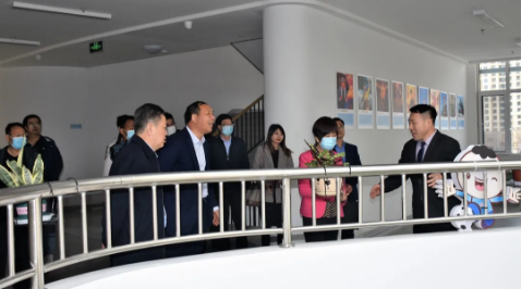 蘭州新區(qū)教育系統(tǒng)曾俊萍局長(zhǎng)一行人與楊世臣校長(zhǎng)親切交談。