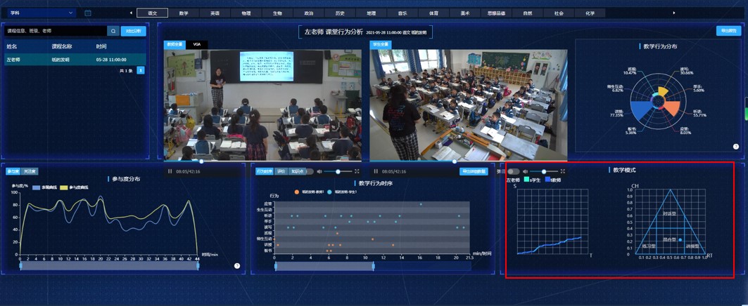 目前,現(xiàn)代中慶基于人工智能與常態(tài)化錄播融合開發(fā)的中慶智課系統(tǒng)和智能研修平臺(tái)經(jīng)過了高校論證和專家評(píng)審,已經(jīng)具備了有效采集和分析課堂學(xué)情數(shù)據(jù)的能力。具體體現(xiàn)在采集和分析課堂教學(xué)行為數(shù)據(jù),即教師和學(xué)生的9種行為占比和分布,課堂S-T行為圖和課堂類型判定,學(xué)生課堂參與度、專注度曲線,和聽評(píng)課結(jié)合的教師能力矩陣等多個(gè)方面;同時(shí),數(shù)據(jù)范圍不僅包括課中,還前延到教師備課和磨課的環(huán)節(jié)。