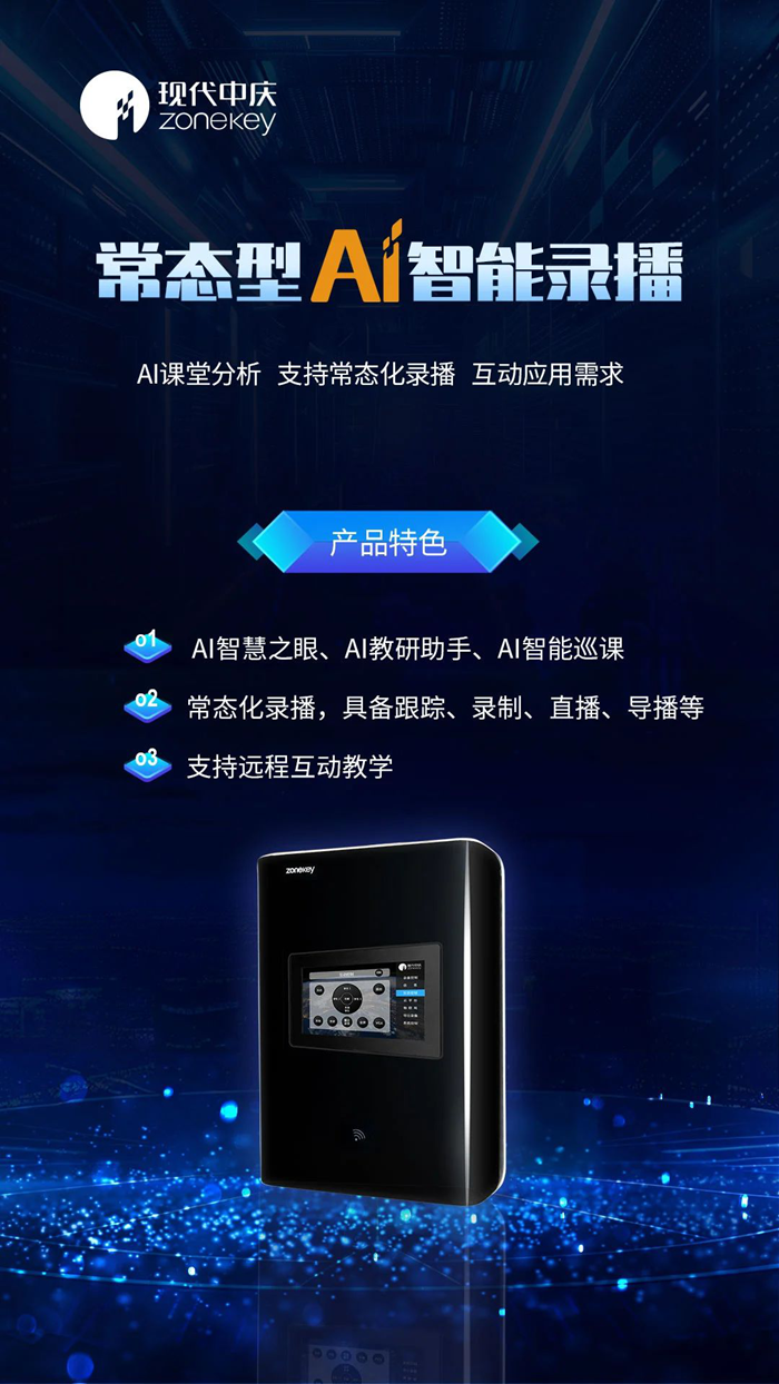 現代中慶AI智能錄播作為一臺教室終端,具備三大AI功能: