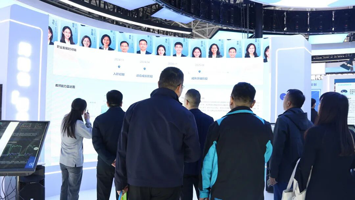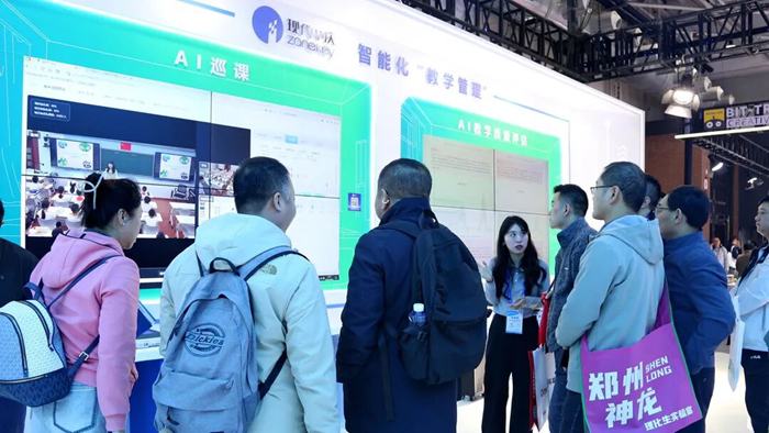 現(xiàn)代中慶參展并打造的“未來教師成長AI體驗(yàn)中心”,圍繞成長陪伴、智能管理、周期畫像三大模塊的諸多精彩體驗(yàn),充分展現(xiàn)了AI賦能教師專業(yè)發(fā)展全周期的創(chuàng)新應(yīng)用,成為展會關(guān)注焦點(diǎn)。