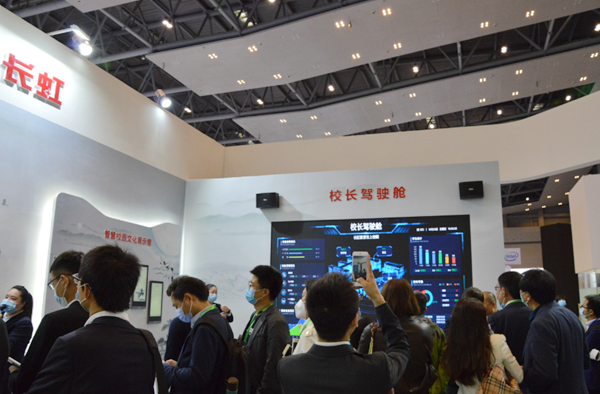 本屆展示會,長虹教育攜校長駕駛艙、云上校園解決方案、三個課堂、研討型教室、常態(tài)化智慧課堂等產(chǎn)品解決方案亮相現(xiàn)場。