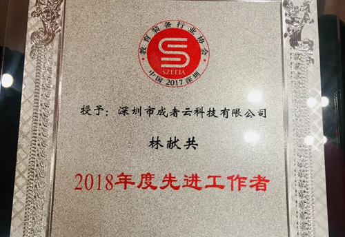 成者科技將教育現代化與科技進步相融合,為教育裝備、教育信息化提供解決方案。在本次盛會的同期活動——深圳市教育裝備行業協會一屆二次會員代表大會暨一屆三次理事會議上,成者作為深協會員單位之一,有幸獲得“愛心奉獻獎”的榮譽,成者市場運營總監林獻共評選為“2018年度先進工作優秀者”的稱號。