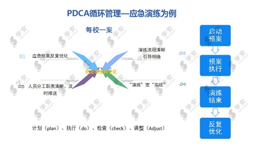 事前預(yù)防:學(xué)安通過安全巡檢、學(xué)校自查、隱患排查及應(yīng)急演練等,在事故前期打造安全校園環(huán)境、提高師生安全防范意識及逃生自救能力;在AI智能識別分析處理發(fā)現(xiàn)異常情況時,可智能報警;