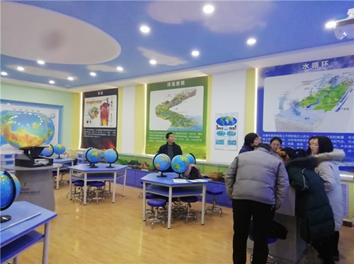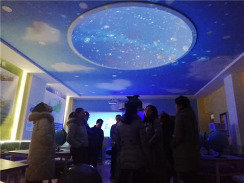 靖遠二中數字化地理專用教室配備了中教啟星數字星球系統、交互地圖教學系統、語音立體地形圖等數字化交互教學設備,以及地理圖層學習箱、地理交互式學具、仰望星空快樂成長課程包等實驗教學設備和相關教學課程,并通過地理知識窗簾、掛圖、穹頂等環境設計為師生們營造濃厚的地理教學氛圍。