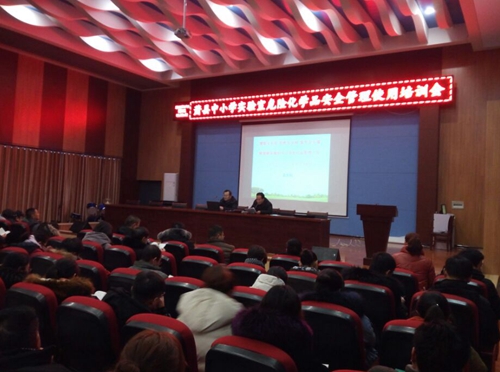 為進一步加強中小學實驗室危險化學品管理工作,確保實驗室的安全,1月11日,蕭縣教體局在思源實驗學校舉行了中小學;钒踩芾硎褂门嘤枙8鬣l鎮中心學校裝備管理員,縣直、民辦學校分管副校長、中小學實驗室管理員等共300余人參加了培訓。