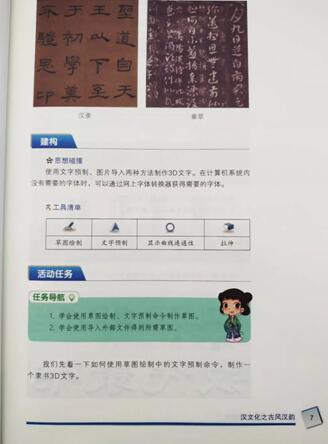 本套教材分為“古風漢韻”和“金戈鐵馬”兩個單元,分別以漢代日常生活用品和徐州漢文化的武器軍事為題材,在了解徐州漢文化的基礎上,學習相關的3D打印建模,從而讓學生在更多地了解徐州漢文化的同時學習3D打印建模技術。