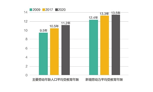 2020年教育事業發展主要目標為:高中毛入學率需要達到90%,高等教育毛入學率達到40%;人力資源開發主要目標為:主要勞動年齡人口平均受教育年限到達11.2年,新增勞動力平均受教育年限達到13.5年。