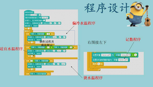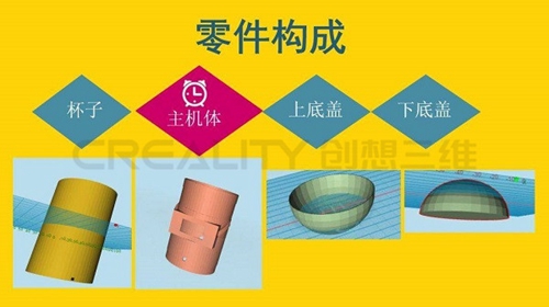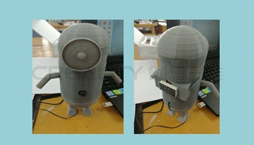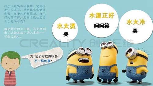 用3D建模軟件設計杯子,小黃人的眼睛、腿、手肘等結構,輔以一些簡單的電子傳感器和編程,一個有思維、有情感、有軀體的小黃人就出來了。