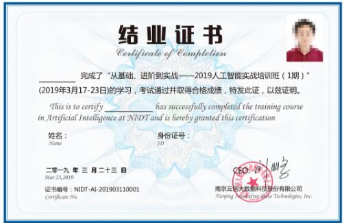 【必發】劉鵬教授與云創大數據聯合頒發的人工智能實戰培訓結業證書。(結課后為每位學員頒發)