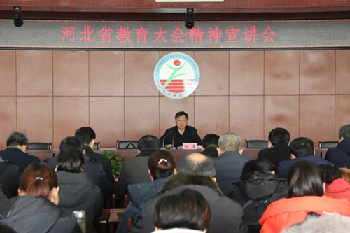 年前,省委教育工委書記、省教育廳黨組書記、廳長楊勇到河北省邢臺市做全省教育大會精神宣講報告,到臨城縣慰問教師并參觀臨城特教學校的教室。河北省教育系統省市縣相關領導參加會議,臨城縣全縣中小學校長、教師代表共130余人聆聽了全省教育大會精神宣講報告。