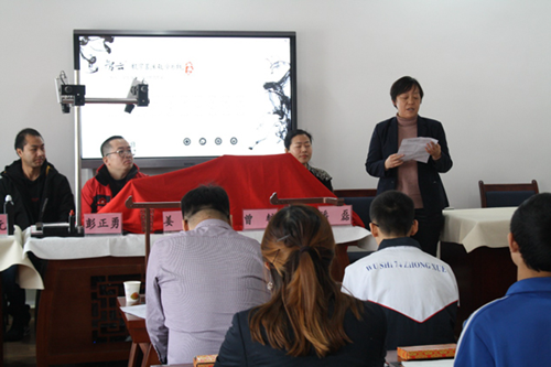 頭屯河區(qū)教育局長姜龍介紹了頭屯河區(qū)教育局積極貫徹《教育部關于中小學開展書法教育的意見》(教基二[2011]4號),將書法教育作為頭屯河區(qū)的特色項目,依據(jù)《中小學書法教育指導綱要》指導各中小學認真開展書法教育取得的成果。贊揚了七十四中將書法教育與現(xiàn)代智慧書法教室有機的結合在推進書法教育工作上先試先行做出了有益的嘗試。希望全區(qū)各學校堅持開展書法教育,為全面提升區(qū)中小學校書法教育水平做出積極的貢獻。