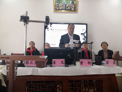 潘書記講話結束后,烏魯木齊市經濟技術開發(fā)區(qū)頭屯河區(qū)教育局長姜龍和三位書法家共同為七十四中智慧書法教室舉行開筆儀式。