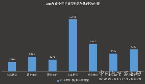 圖8 2018年全國教育裝備招標采購信息量地區統計圖