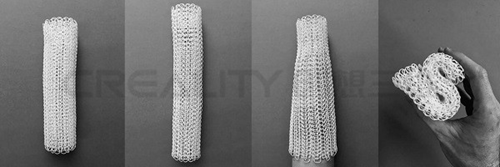 這項研究表明,SLS是一種合適的制造工藝,可以使用尼龍(PA12)粉末實現(xiàn)柔性管狀針織結構。對其他柔性粉末材料(如TPU)的進一步研究將有助于測試材料的機械性能,結合針織結構的拉伸和柔韌性的固有特性。這樣就可以在尼龍(PA12)和TPU之間進行比較研究。