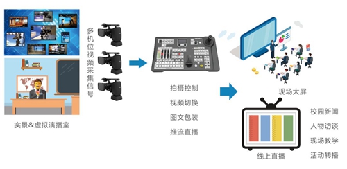 廣播級校園電視節目拍攝制作系統可實現電視節目實時制作、節目錄制、網絡直播、后期編輯,服務全項電視制作流程。KXWELL采用視頻技術手段,綜合利用專業技術,打造先進校園電視臺系統,為校園電視臺在融媒體時代的發展與應用進行重新定位,探索出更好的應用模式。