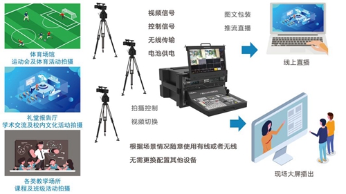 集有線、無線融合設計的容移播,配合電池供電及航空箱式設計,便于移動和現場快速搭建,避免了復雜的現場供電連接,攝像機控制、供電、視音頻傳輸一體式設計,結構緊湊,開機即用,實現直播錄播,說走就走!