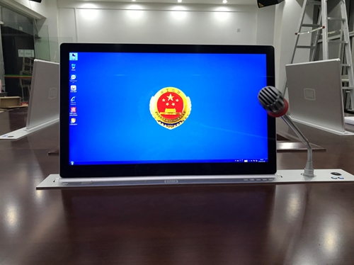 配置的高清超薄液晶觸控屏,單屏帶話筒一鍵或獨立升降控制,嵌入式安裝方式,使整個會議室看起來整潔、美觀。