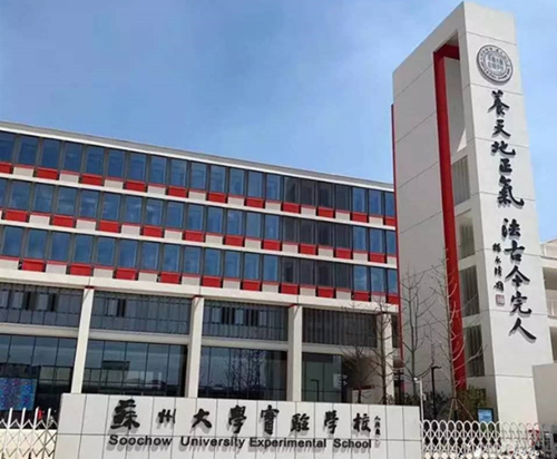蘇州大學實驗學校是高鐵新城核心區內第一所公辦連帶幼兒園的九年一貫制學校,學校總投資約3.8億元,用地8.5萬平方米,總建筑面積約7.3萬平方米。中學規模12軌36班、小學規模8軌48班、幼兒園6軌18班,可容納學生共4000人左右。