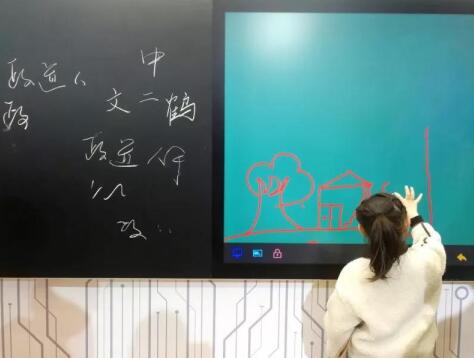 小朋友在歐帝科技智慧黑板上“即興創(chuàng)作”
