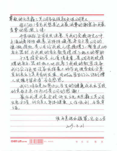 云南維西傈僳族自治縣地處三江并流腹地,自古是滇西北疆防要塞之地。大起大落的地勢,復雜多樣的地貌,導致維西縣交通并不便利。近些年國家加大扶植力度,提高維西縣中小學的教學水平。通過中國青少年基金會項目,鑫三芙公司得知維西縣的學校缺乏音樂教學設備,遂通過青少年基金會捐贈了一些音樂器材,盡綿薄之力。今日非常榮幸收到維西縣保和鎮第二完全小學的感謝信,深受感動。正如信中所說,‘授人玫瑰手有余香’,這封信也是對我司的激勵,激勵我們研發生產更好的音樂教學產品,為音樂教育事業盡一份力。