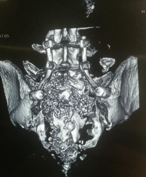 據了解,骶神經調節手術主要治療骶三神經損傷造成的排尿排便功能障礙,一般通過骶三神經孔將電極放置進去。但是,這位患者因為骶骨粉碎性骨折,破壞了骶三神經孔,無法定位骶三神經,為治療帶來了極大困難。
