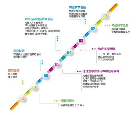 中教啟星自2006年以地理學科為起點,開啟了學科裝備探索的征程,目前全國有超過6000所學校的老師在中教啟星數字化地理專用教室開展教學。中教啟星基于數字化與虛擬現實技術的創新型地理專用教室是指以“數字化”為主導,以數字星球系統為核心,遵循教育部《中學地理專用教室建設規范》,配備常規教學類的交互地圖教學系統;天文實踐類的課程資源包;創新應用類的虛擬現實VR教學系統、地理AR沙盤、全息教學系統、3D地理教學系統;實驗活動類的地理交互學具、地理綜合實踐套裝;并輔以教學通用設備以及環境創設,能夠把地理課本上的知識更直觀、生動、全方位的精彩呈現,讓學生打開傳統的思維模式,以一種更加生動活潑的方式學習地理,有利于教師教學活動的開展和學生學習效率的提高。在功能定位上,方案能夠完美解決常規教學、實驗教學、綜合實踐、創新教學、虛擬現實探究等五方面的教學需求,并為教學應用培訓、教學教研會議、專家引領成長等提供全方位的服務支持。