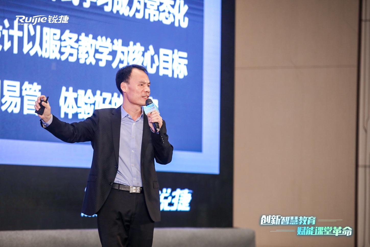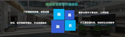 他談到,近年來,銳捷一直堅持“扎根行業、深入場景”的理念,基于教育行業客戶需求和應用特點進行產品創新。“簡、易、融、合”不僅是這一理念的充分體現,同時也代表了新一代智慧教室的建設思想。