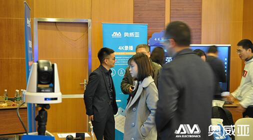 會議現場展示了奧威亞高校智慧課室、實訓錄播、AI常態化錄播、摳像微課、移動錄播等智慧應用,吸引了眾多嘉賓近前參觀了解。