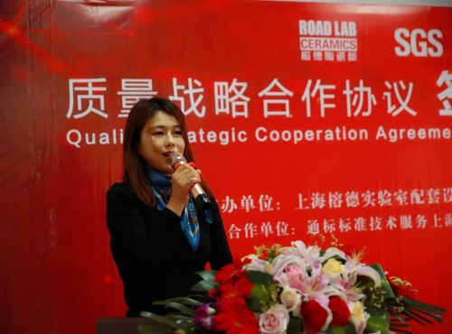 簽約儀式上,榕德總經理黃華女士首先向來賓問好。緊接著向參與方介紹了榕德與SGS合作方向與事宜,向區市相關領導部門匯報榕德公司近年來取得的重要成績。同時,就實驗室行業近年來火災頻發,對實驗室家具及材料安全的要求越來越高的情況發,表了自己的看法,特別指出榕德對實驗室安全的重視。SGS實驗室經理張志剛先生也表示非常看好此次雙方的合作,2019年作為榕德的質量戰略年,SGS希望在以往友好合作的基礎上,與榕德共同進一步促進實驗室陶瓷臺面的品質發展。