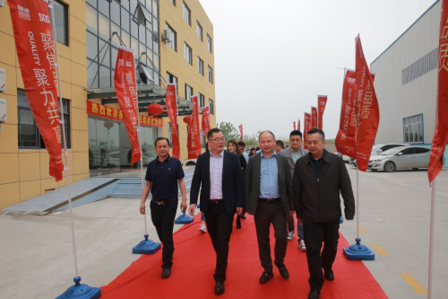 九江市柴桑區主管工業副區長王宏松先生(右二)、管理局副局長郭建成先生(右一)、沙河街道黨工委書記趙送梁先生(左二),副鎮長孫傳華先生(左一)共同見證本次簽約儀式