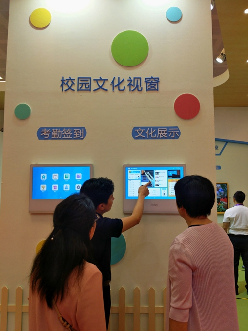 而以云平臺、云服務器為基礎的希沃云班牌,則豐富多彩地展示了學校信息化建設成果,實現學校信息和文化的多維度呈現與信息化管理。通過云班牌,老師可以便捷地上傳班級風采、定制個性化界面、實時對接校本數據、實現家校實時互動。其中人臉識別的簽到考勤功能引起了觀展人士的注意,來自廣州的朱老師說:“班牌的這個人臉識別簽到很適合幼兒考勤,還有家校溝通功能,也對我們幼兒園這些沒有手機的寶寶們提供了獲取家長留言的渠道,看好這款產品。”