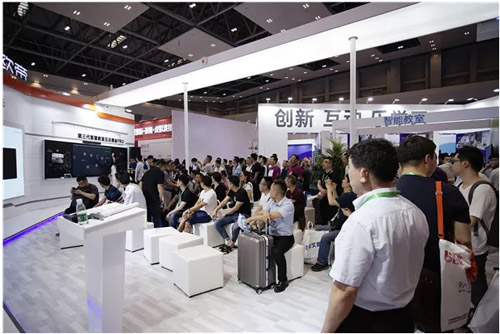 展會上歐帝展臺前可謂車水馬龍,絡繹不絕的參觀者從四面八方涌入展臺內進行體驗,利用歐帝智能硬件進行交互,南來北往的參觀者們,讓展會現場熱鬧非凡,同時更是引來了教育部和中國教育裝備行業協會的領導們到會觀看歐帝展位。