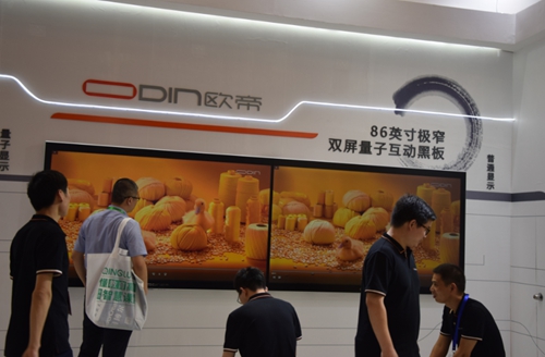 本屆展會,歐帝科技攜極窄雙屏互動黑板、大數據云計算方案、量子互動黑板、98英寸巨幕黑板等產品亮相現場。