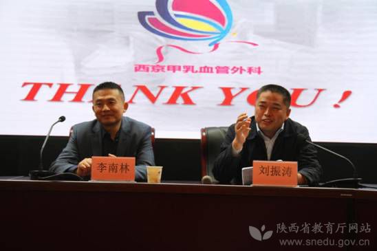 空軍軍醫大學西京醫院甲狀腺乳腺血管外科主任醫師李南林教授(左)在省委教育工委省教育廳作專題講座