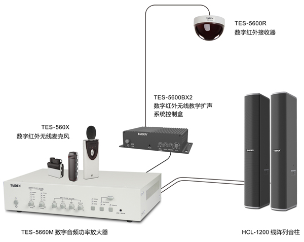 為提供更好的聲效,讓數(shù)字紅外傳輸高保真音質(zhì)的優(yōu)點得以充分體現(xiàn),TAIDEN還研發(fā)了配套的專業(yè)級DSP數(shù)字音頻處理功放與音柱。TES-5600M DSP功放內(nèi)置Webserver,可以調(diào)節(jié)麥克風參量均衡、圖示均衡及延時等,同時還支持場景保存。TAIDEN HCL-1000系列線陣列音柱具有很強的垂直指向性,適合遠距離擴聲,聲場覆蓋更均勻,使整個教室擴聲系統(tǒng)(包括建聲和電聲)的傳聲增益更高而不易引起嘯叫,能夠充分滿足普通教室與大型階梯教室的不同擴聲需求;另外,很多教室有建聲缺陷,天花和墻面沒有吸聲體,容易產(chǎn)生回聲等聲學(xué)缺陷,TAIDEN HCL-1000系列音柱在水平方向上覆蓋角度是150度,而在垂直方向上是20度,能夠有效減少天花板的反射聲,從而有效解決建聲缺陷,提高教室里的語言清晰度。